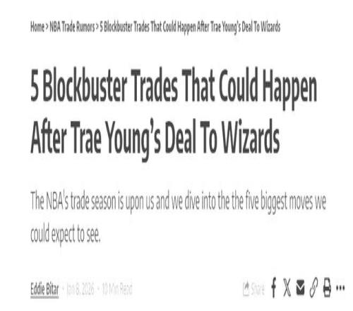 特雷·楊的交易已為聯盟敲響了重磅交易的號角,在剩余的一個月時間里,各支球隊的運作將愈發頻繁。這5筆潛在的交易每一筆的達成都將重塑聯盟的競爭格局。而NBA球星的流動與陣容的調整,正是聯盟保持活力的關鍵所在。無論最終這些交易能否落地,本賽季的交易截止日都注定將充滿懸念與驚喜。