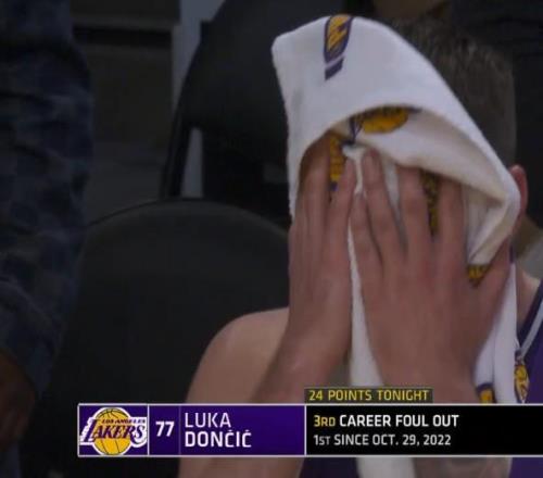 在第四節最后時刻,東契奇在防守雄鹿后衛小凱文-波特時盡管已經非常小心但仍被吹罰三分犯規,但此時湖人也沒有挑戰機會因此東契奇也被吹了第六次犯規不得不離場。下場后東契奇感到非常不滿,他回到替補席后怒摔毛巾。