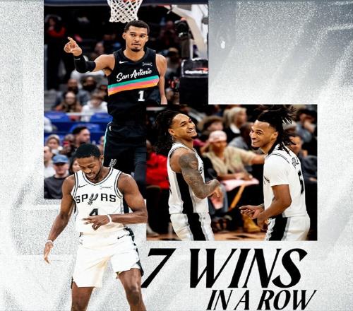 馬刺近期表現強勢,連續兩次擊敗西部第一雷霆,其中一場為20分大勝,另一場在NBA杯半決賽以111-109險勝終結對手16連勝。文班亞馬復出后以替補身份貢獻關鍵影響力,兩戰均發揮重要作